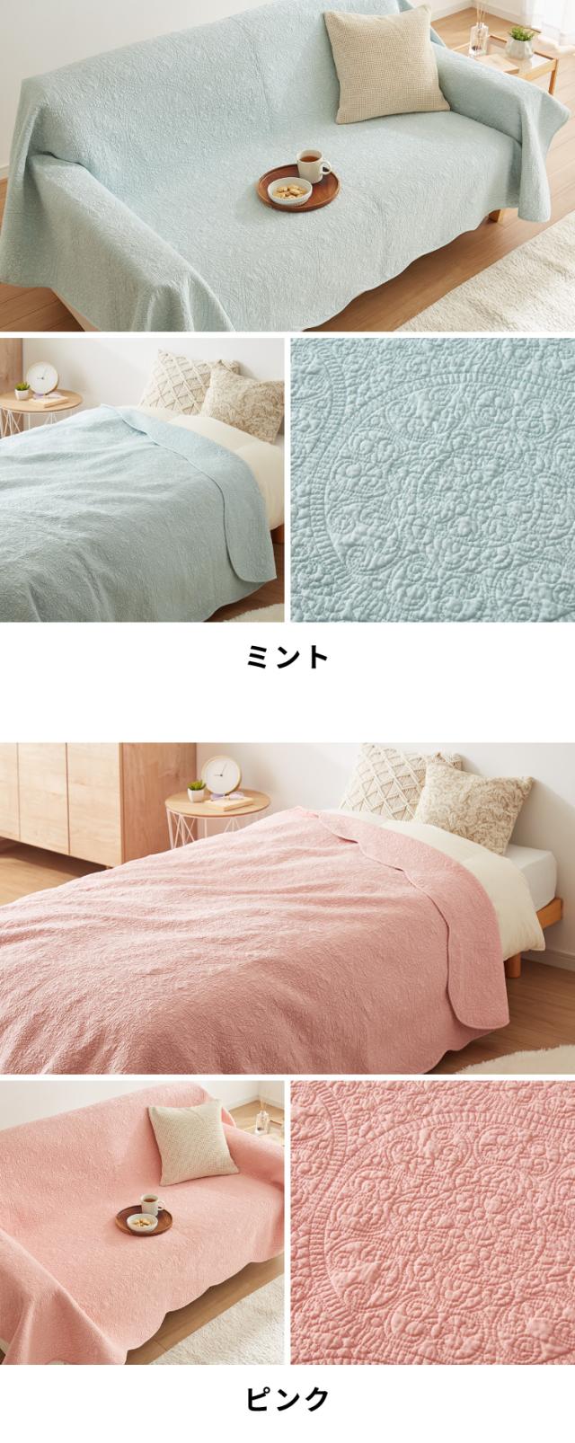 ・ダマスク調の細かいキルティングが特徴のマルチカバー