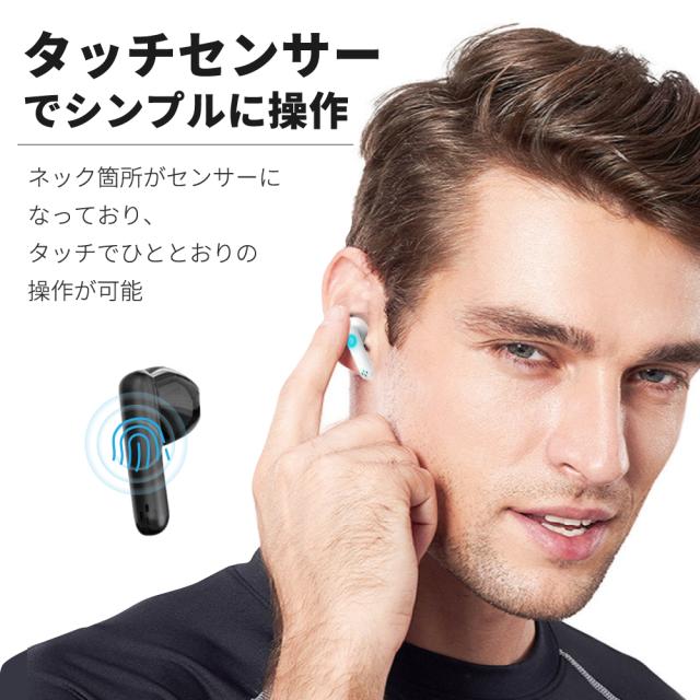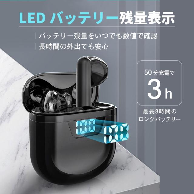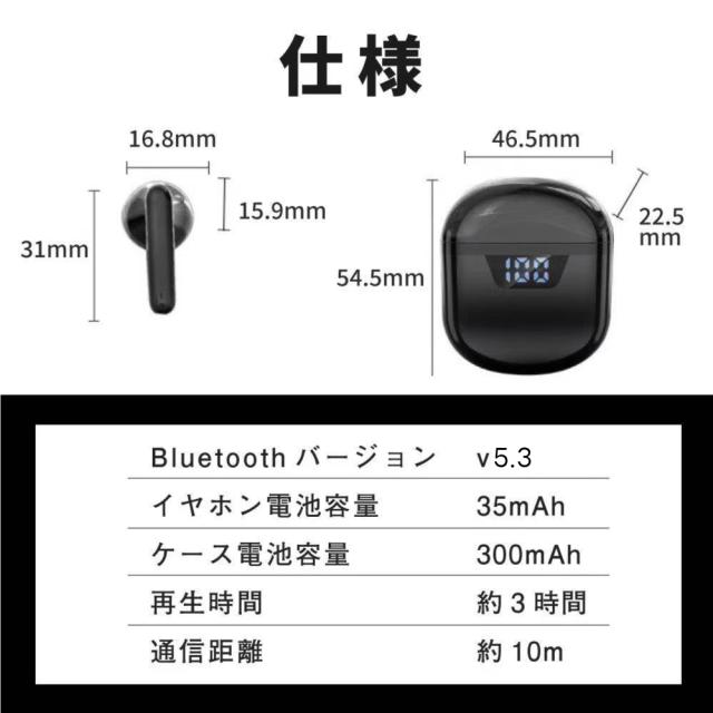 ワイヤレスイヤホン Bluetooth5.3 iPhone android ワイヤレス イヤホン マイク付き 片耳 両耳通話 Type-C急速充電 充電残量表示 連続再生3時間 タッチ式 防水 充電ケース付き 軽量 コンパクト 日本語説明書 B55