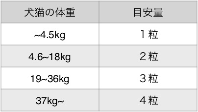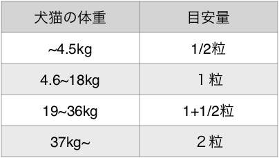 ・最初の3週間経過後、与える量を減らすことができます。この場合1粒から1/2粒を目安に徐々に減らしてください。