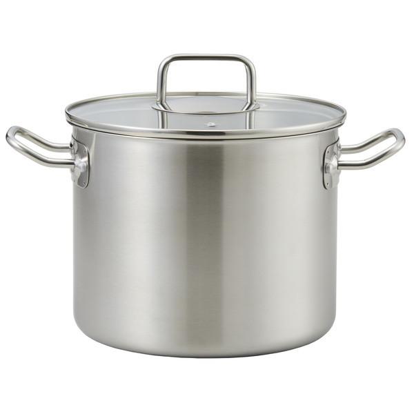 ベストコ ND-6345 寸胴鍋 22cm サテン エコーズ 軽い 見える ステンレス ガラス蓋付 IH対応