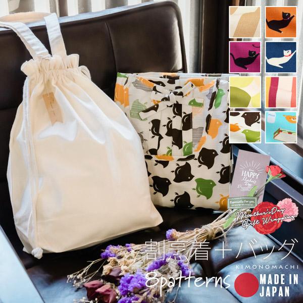 割烹着 おしゃれ 日本製 おしゃれ 割烹着 かわいい 割烹着 ロング丈 トートバッグ付き「かわいい系・幾何学柄 全8柄」 ロング割烹着 着物割烹着 エプロン プレゼント最適品 母の日 カーネーション 誕生日 クリスマス 【送料無料】