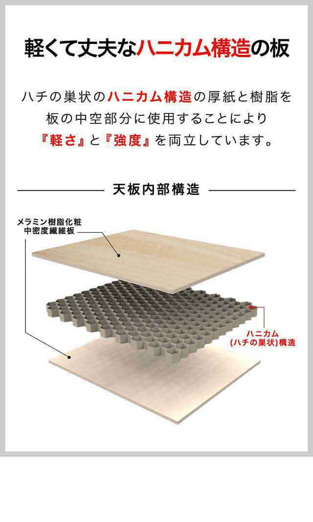 | 材質: メラミン樹脂化粧繊維板(ハニカムフラッシュ構造)/スチール |