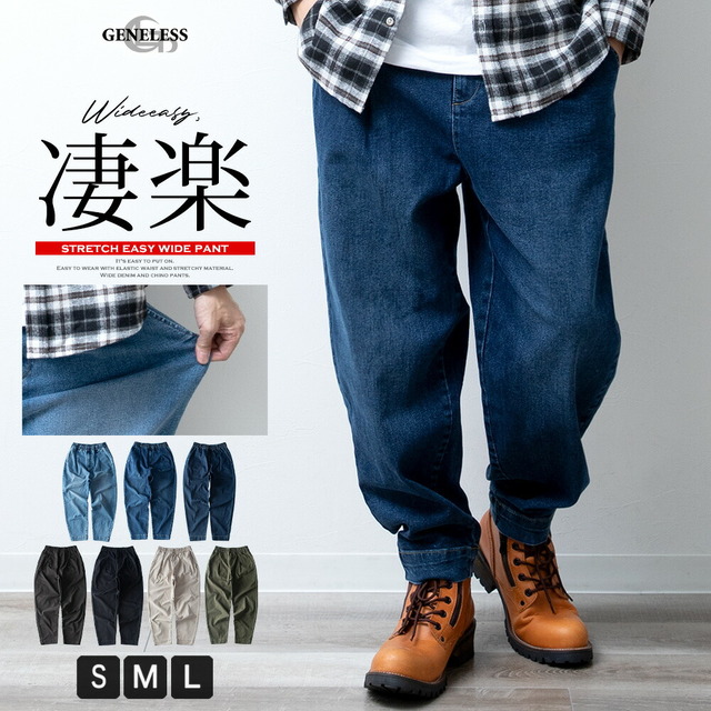 ワイドパンツ デニム メンズ イージーパンツ ストレッチ ゴムウエスト デニムパンツ バギーパンツ ゆったり ジーパン ジーンズ チノ カーキ ズボン ワイド インディゴ