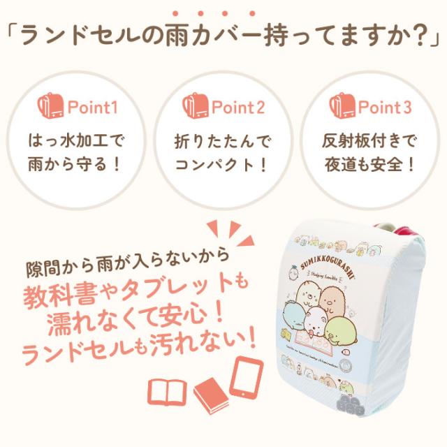 ランドセルカバー 雨 通販 すみっコぐらし 女の子 おしゃれ かわいい レイングッズ 雨カバー リュック レインカバー 入学準備 通学 はっ水 撥水 すみっこぐらし 収納袋付き 雨具 台風 エール