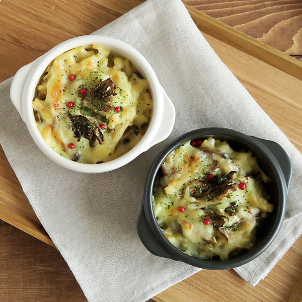 寒い季節に美味しいグラタンなどのオーブン料理。こちらは持ち手付きのデザインが可愛らしいグラタン皿です。小さめサイズなのでお子様用やグラタン、パン粉焼きなどを添えたい時に便利なサイズ。