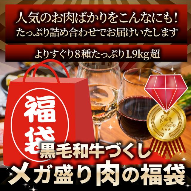 肉の福袋 ルビー 食品 ステーキ 黒毛和牛 ルビー メガ盛り 総重量1.93kg(8種 食べ比べ)完全赤字の肉袋! 福袋 牛肉 焼肉ステーキ プレゼント 送料無料 お肉の しゃぶまる