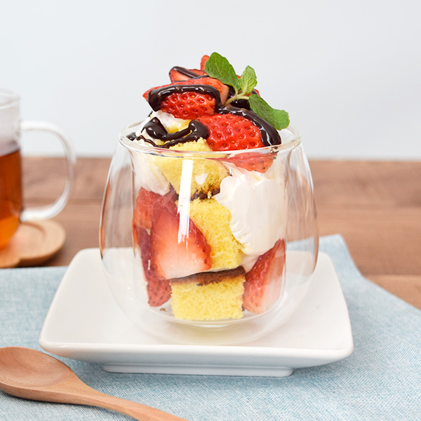 宙に浮いたような盛りつけが出来る二重構造のミニグラス。