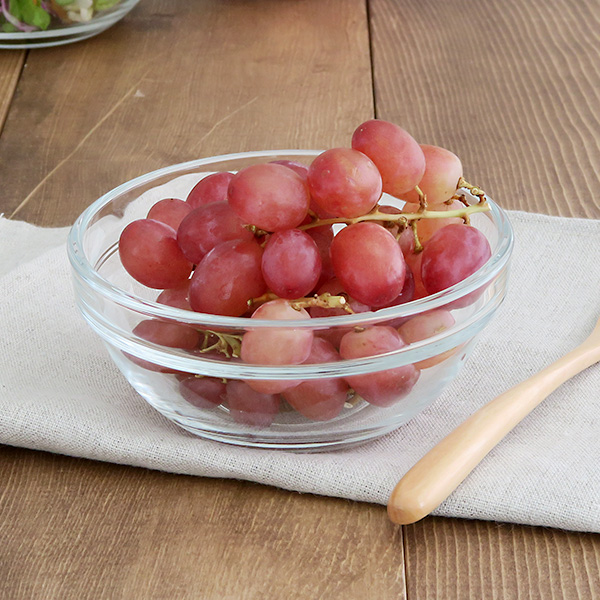 スタッキングできて、キッチンスペースを有効活用できる便利なガラスボウル。こちらはサラダはモチロン、デザートやシリアルボウルなどにオススメサイズ!テーブルに並べるだけでもオシャレに見えます。