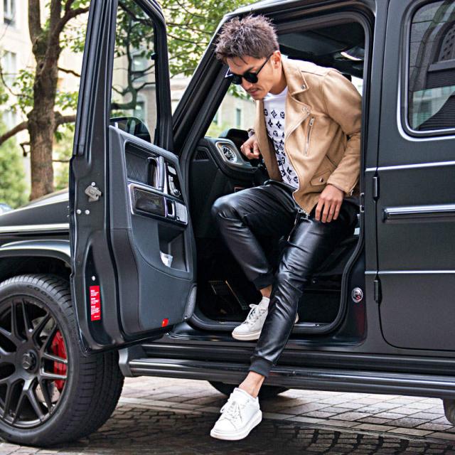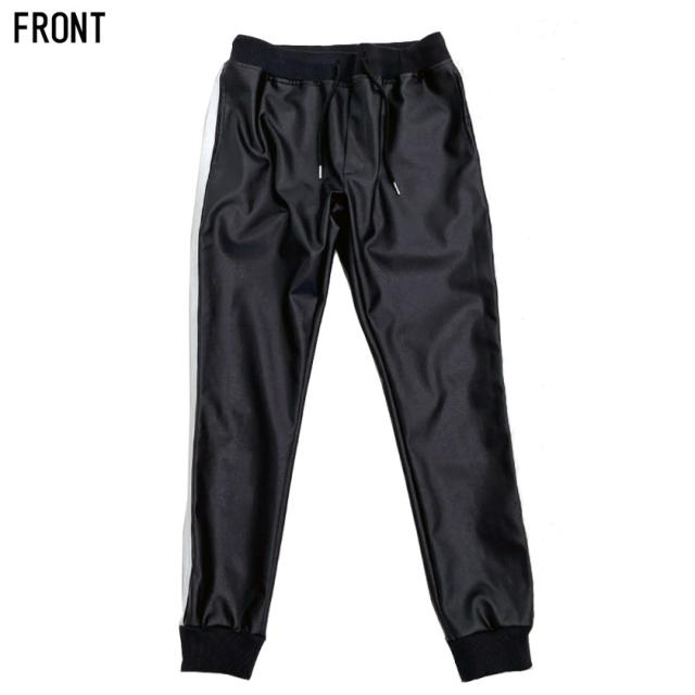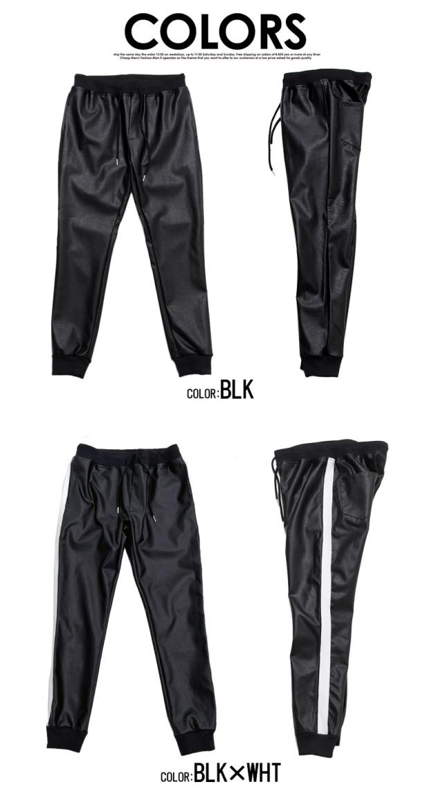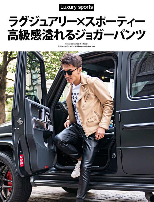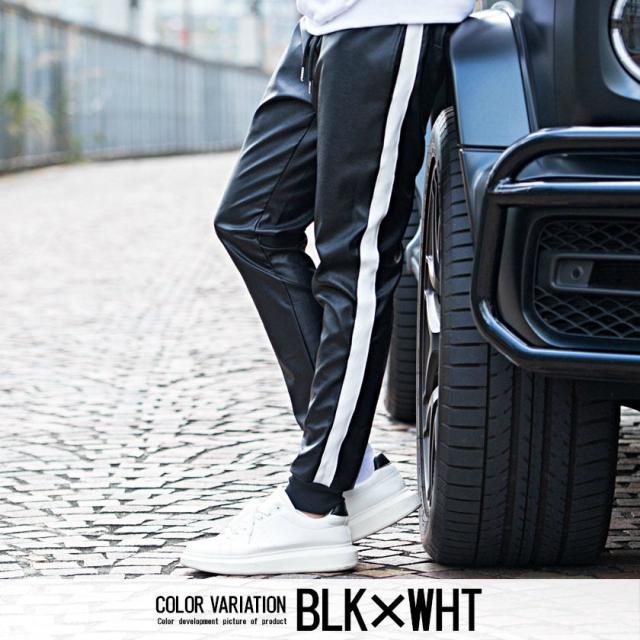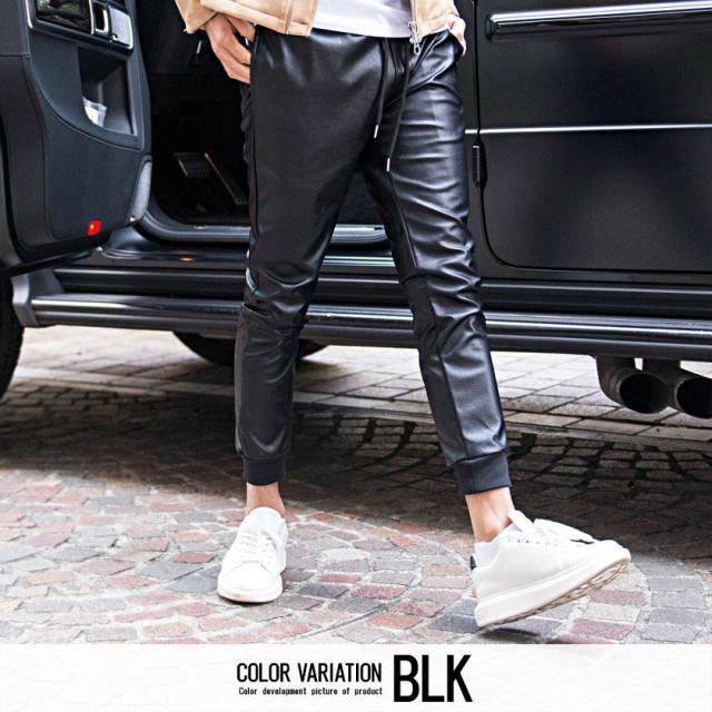 ジョガーパンツ メンズ ボトムス レザーパンツ リブパンツ イージーパンツ PUレザー 合皮 アンクル丈 サイドライン 細身 タイト ラグジュアリースポーツ ラグスポ ブラック 黒 M L XL 秋 冬 CavariA キャバリア 即日発送 [CATN20-65]