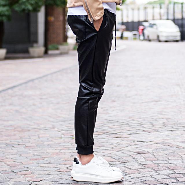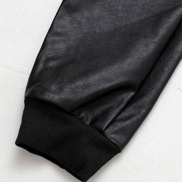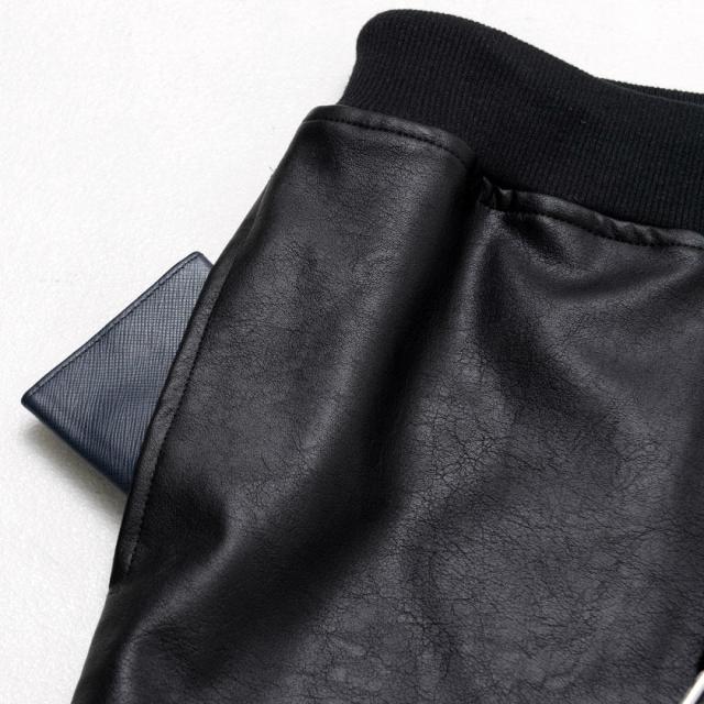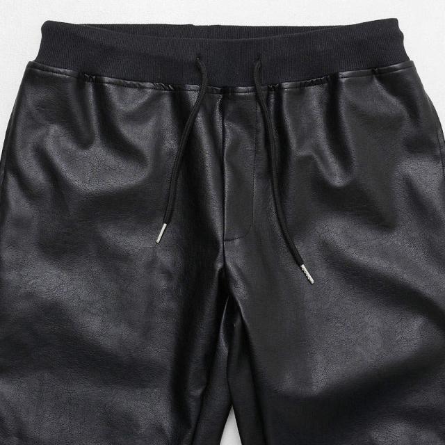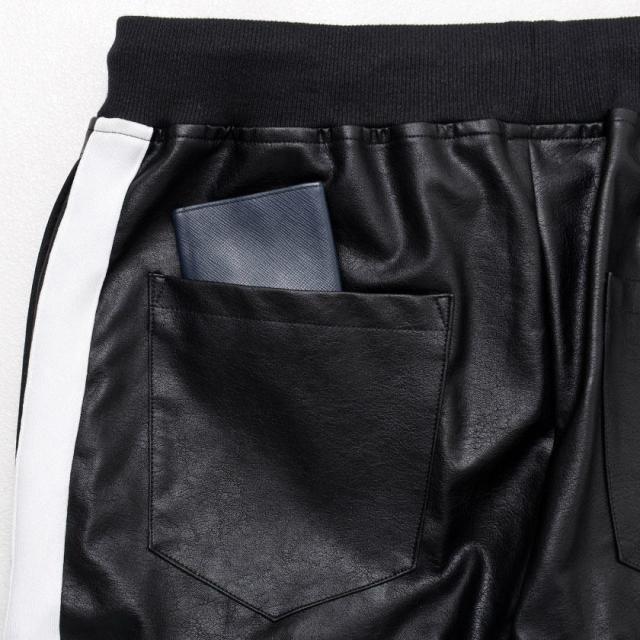 PUレザーを使用したジョガーパンツ。