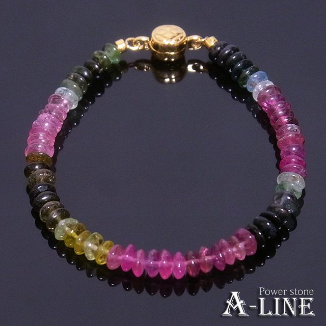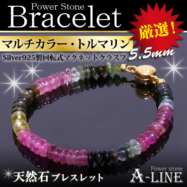 パワーストーン ブレスレット ワイヤー マルチカラー・トルマリン5.5mm マグネットクラスプタイプ PW-3432