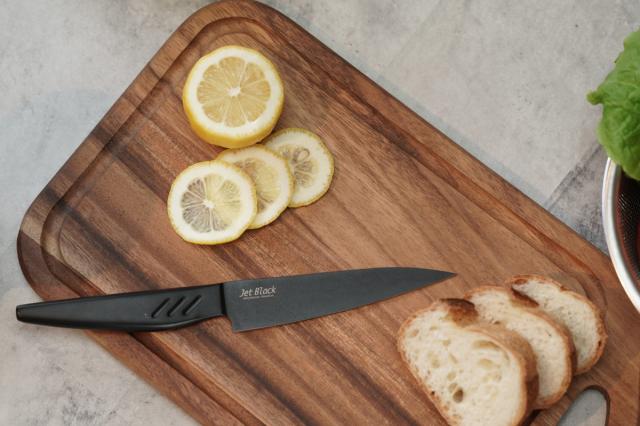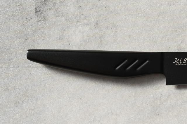 ブラックカラーの美しい洗練されたデザインです。刃身には、モリブデンバナジウム鋼が含まれており、サビに強く、抜群の耐久性で、通常のステンレス鋼よりも丈夫で、刃こぼれしにくく、切れ味の持続性も高いのが特徴です。