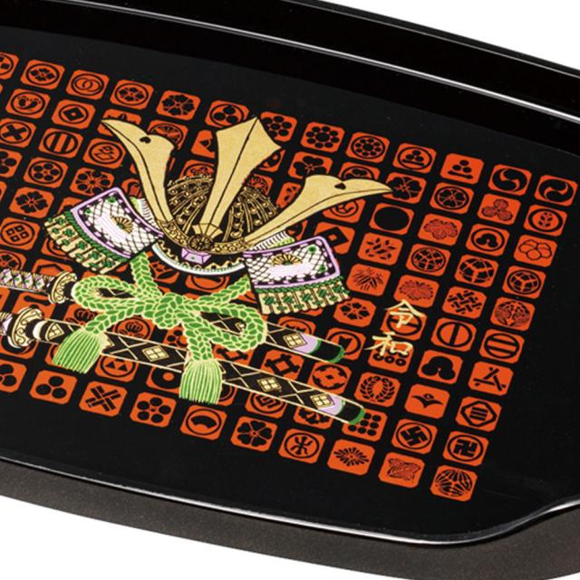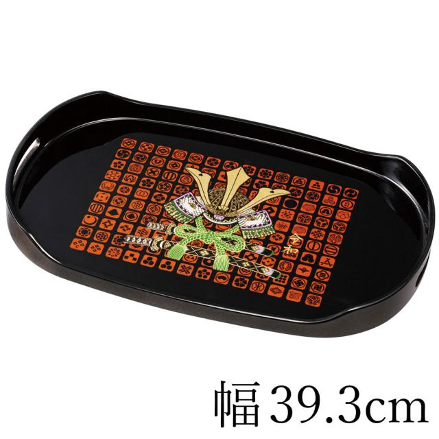 日本製(和歌山県)紀州塗り お盆 トレー 13寸 39.3cm幅 長手盆 黒 令和兜 和風 和室 おしゃれ トレイ おぼん 日本製
