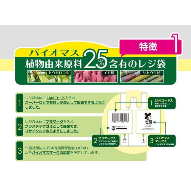 バイオマスレジ袋 直物由来原料25%含有 TX45 白 取っ手付き レジ袋 45号 100枚【送料無料】