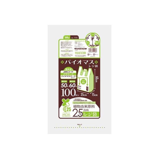バイオマスレジ袋 直物由来原料25%含有 TX50 白 取っ手付き レジ袋 50号 100枚【送料無料】