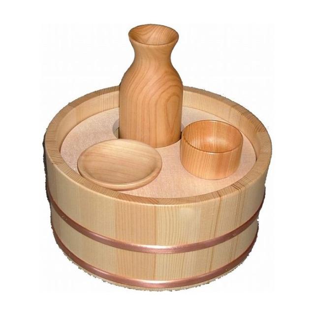 ●素材:湯桶=モミ、仕切板=スプルース、徳利おちょこツマミ皿=ヒノキ