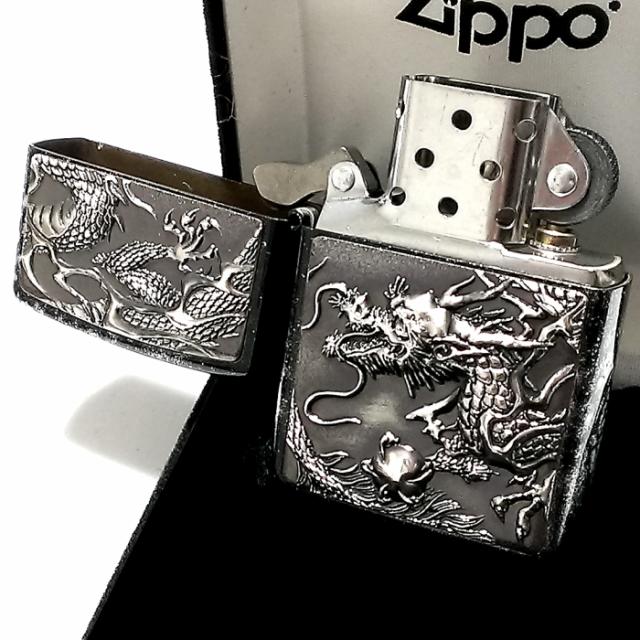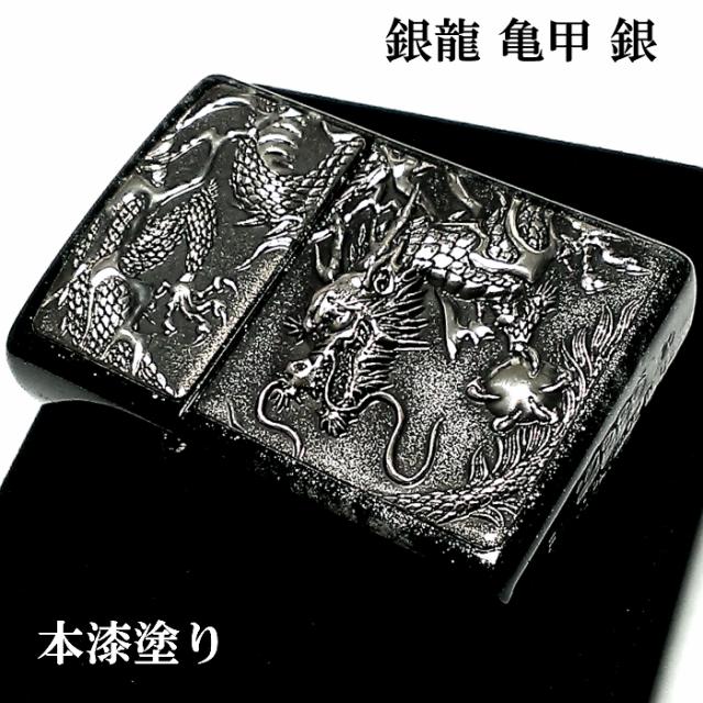 ZIPPO ライター ライズメタル 銀龍 亀甲 銀 伝統工芸 ジッポ 本漆塗り 黒 かっこいい 竜 和柄 シルバー ブラック おしゃれ ドラゴン 高級 メンズ ギフト プレゼント
