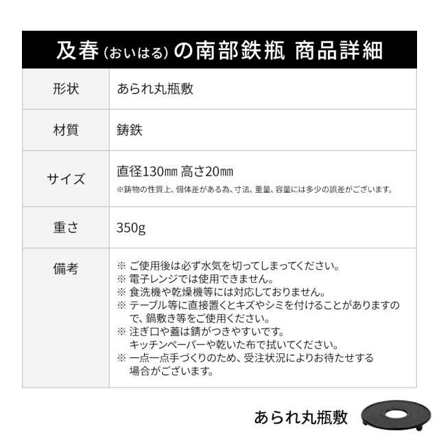 及春の南部鉄器 あられ丸瓶敷