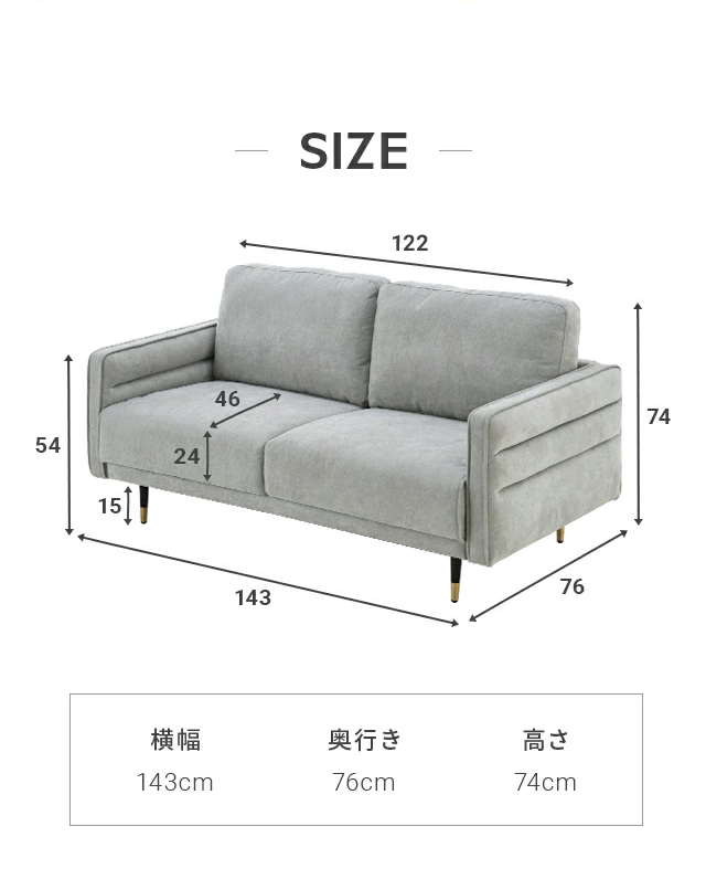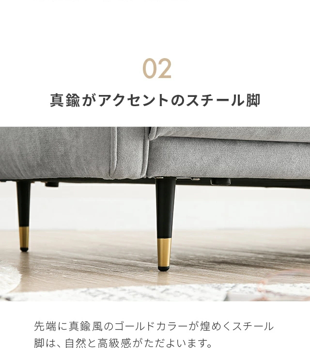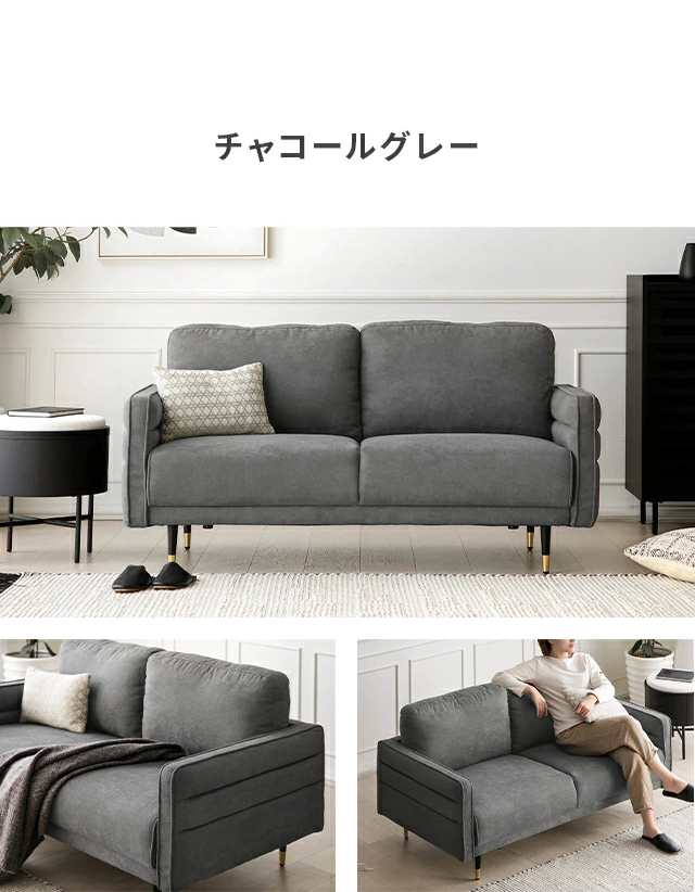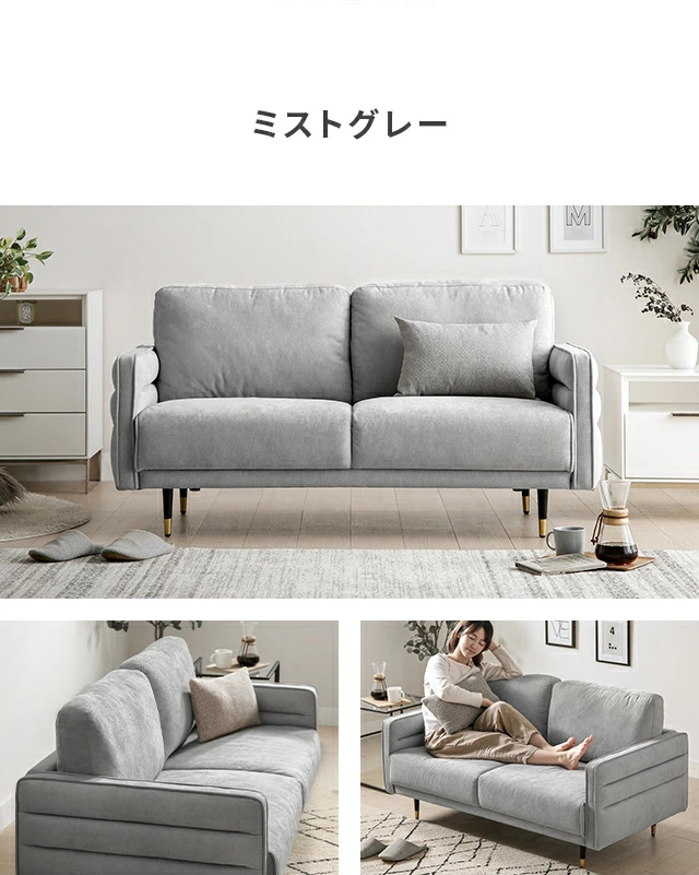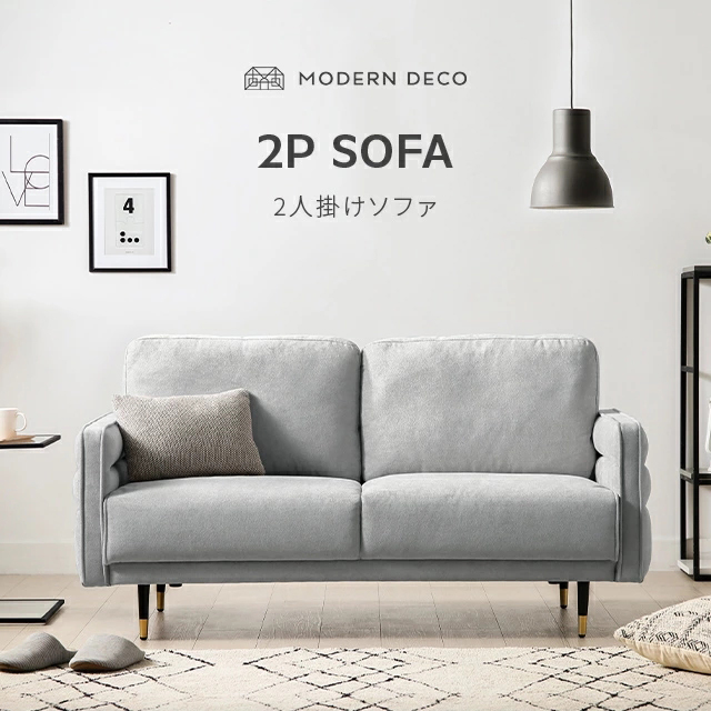 ソファー ソファ 2人掛け 北欧 真鍮風の脚 フロアソファー カウチソファー コンパクト 2P 2人用 二人掛け コーナーソファー カフェ風 布 二人掛け おしゃれ モダン 新生活