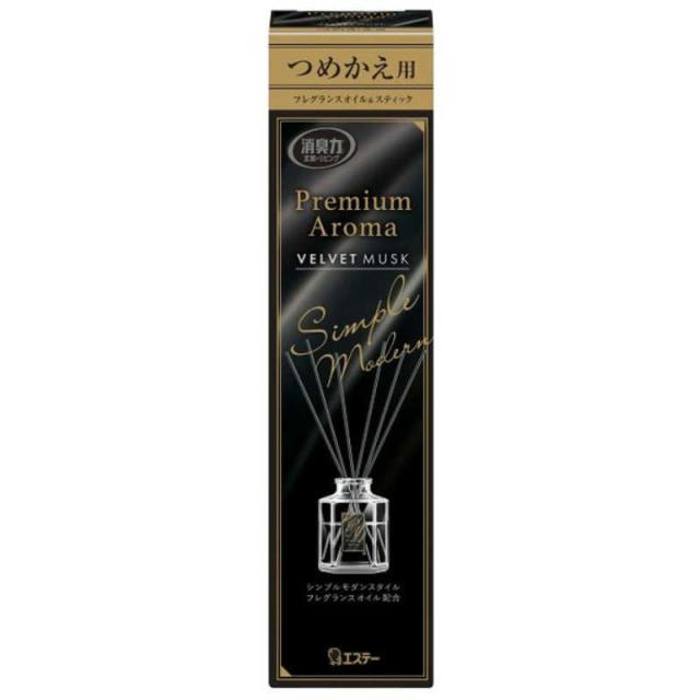 お部屋の消臭力 プレミアムアロマ スティック 玄関 リビング 部屋 ベルベットムスク つめかえ 50mL *エステー/パフューマー厳選/フレグランスオイル配合/こだわりの空間に合う香水調の香りが広がる/スティックの本数で香りの強さが調節できる/香りは通常約1〜2ヶ月持続