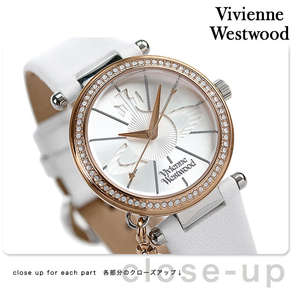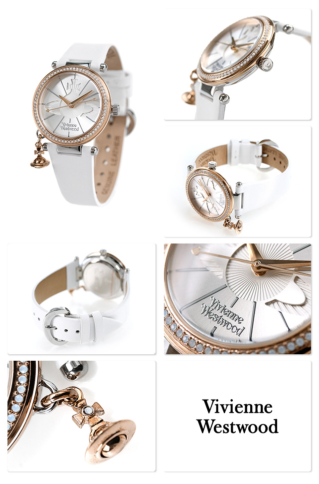 ヴィヴィアン ウエストウッド オーブ 32mm クオーツ レディース 腕時計 VV006RSWH Vivienne Westwood ORB アナログ シルバー×ホワイト 革ベルト ◆Vivienne Westwood(ヴィヴィアン・ウエストウッド)はイギリスのファッションブランドです。ブランドの象徴でもある、英国王室の標章のオーブと天体のサテライトがデザインされたロゴは、「伝統」と「未来」を意味し、「伝統を持って未来を創る」というヴィヴィアンの精神を象徴しています。2006年、ヴィヴィアンはファッションデザイナーとしてエリザベス女王よりDAMEの称号(英国への貢献を称える勲章)を授与。その人気と実績が評価され、反逆性とエレガンスを兼ね備えたアヴァンギャルドなデザインで世界中を魅了しています。 文字盤の中央にデザインした存在感のあるオーブが特徴のモデル。ケースには可愛らしい小さなオーブチャームが付いています。ヴィヴィアンらしいデザインと、揺れるチャームが腕元をオシャレに演出します。