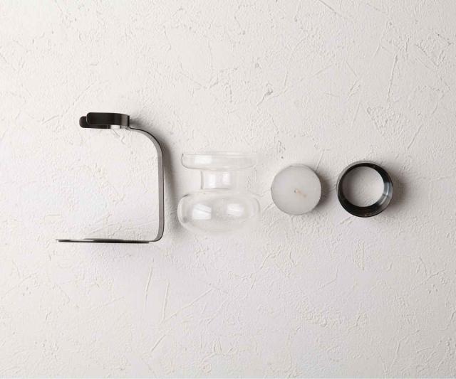 セット内容は、スタンド、ガラスカップ、ホルダー、キャンドル1個が入っています。お好みのアロマオイルを用意すれば、すぐにお愉しみいただけます。