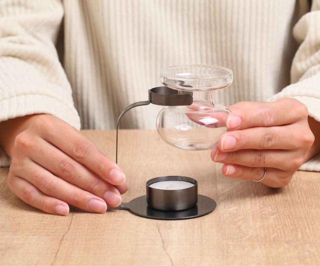 ふわっと香る優しいアロマに癒されるオイルウォーマーです。コーヒー器具を思わせるデザインは、インテリアに温かみを添えます。キャンドルのゆらぎを眺めたり、香りを楽しんだり、リラックスタイムに癒しをプラスしてくれます。