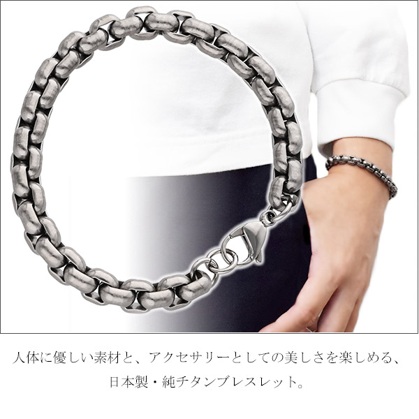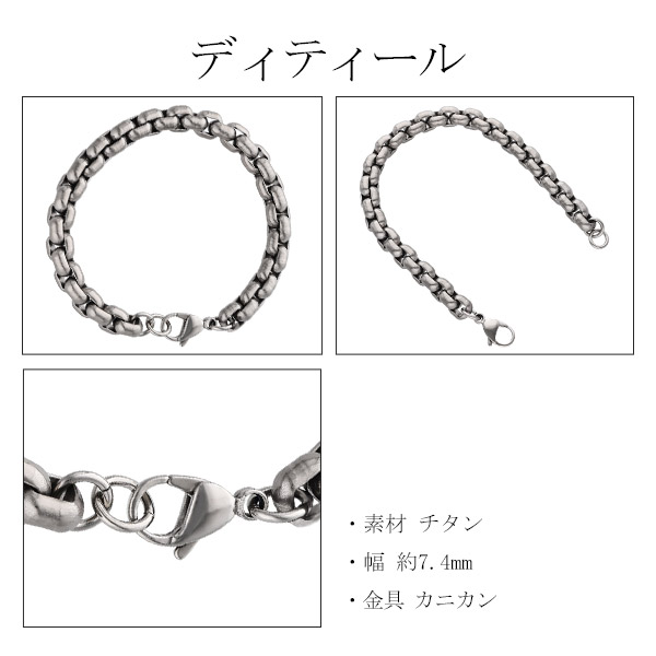 チタン チェーン ブレスレット 角甲丸 幅7.4mm 17 18 19 21cm 日本製 スポーツ 血行 こり チタンブレスレット 金属アレルギーフリー