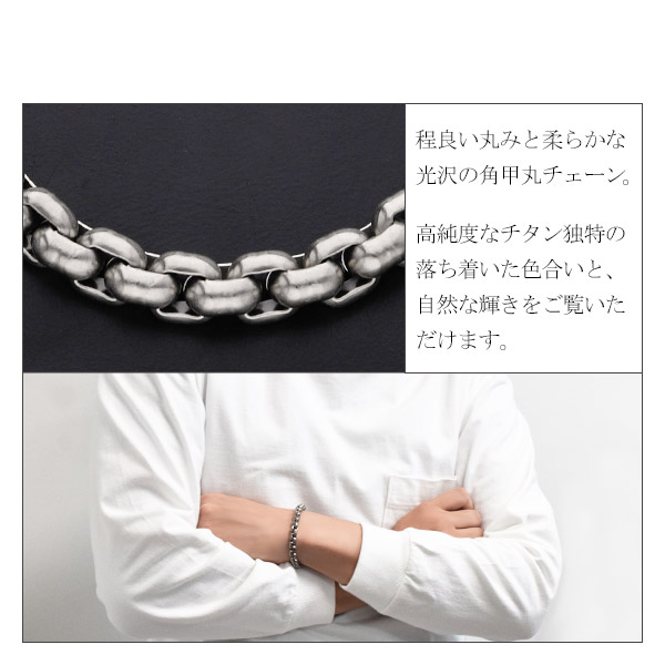 チタン チェーン ブレスレット 角甲丸 幅7.4mm 17/18/19/21cm