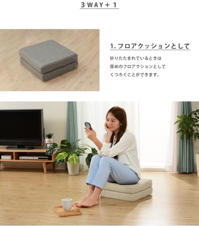 日本製 3way フロアクッション クッション ごろ寝 ごろ寝クッション 折りたたみ 座布団 シンプル ファブリック シンプル 北欧(代引不可)