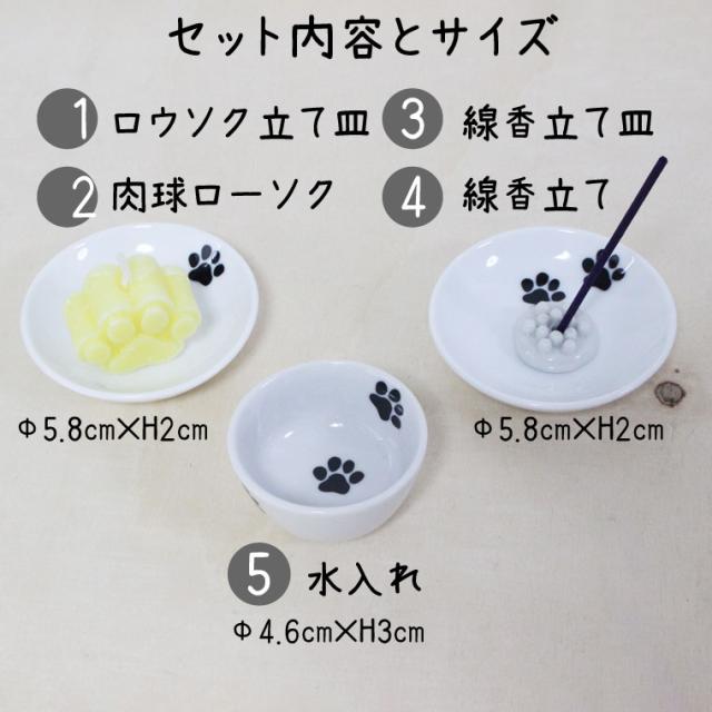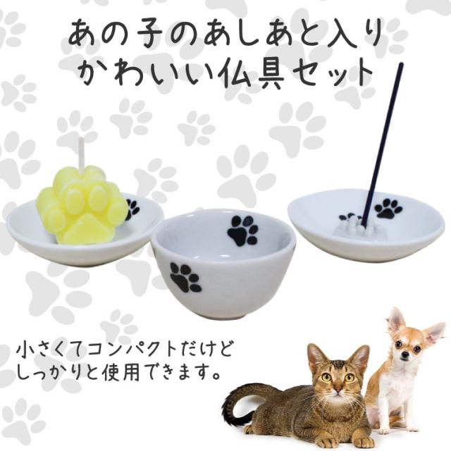 ペット仏具 あしあと 肉球 仏具セット 3点 肉球ロウソク付き かわいい 49日セット ペット用 ペット 仏具 四十九日 犬 猫 ペット供養 ペットロス メモリアル 手元供養
