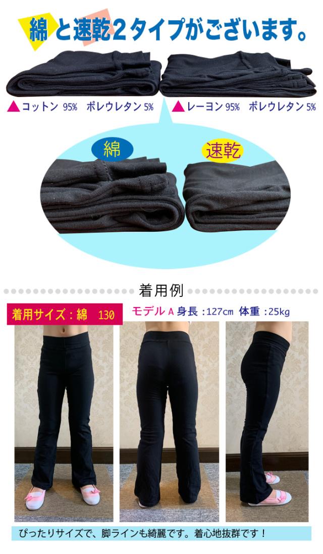 ダンスパンツ 綿 ジャズパンツ ブーツカットパンツ 子供 大人 新体操 美脚 伸縮性 黒 バレエ 習い事 全8サイズ ストレッチ