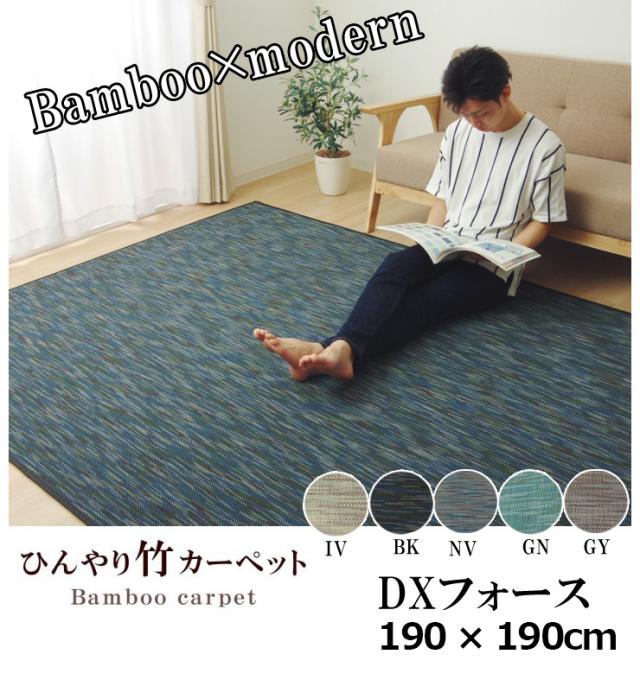 ひんやり ラグ カーペット 無地 シンプル バンブー 竹 DXフォース 190x190cm 正方形 裏面不織布 カジュアル 夏 竹ラグ マット ラグマット 冷感ラグ