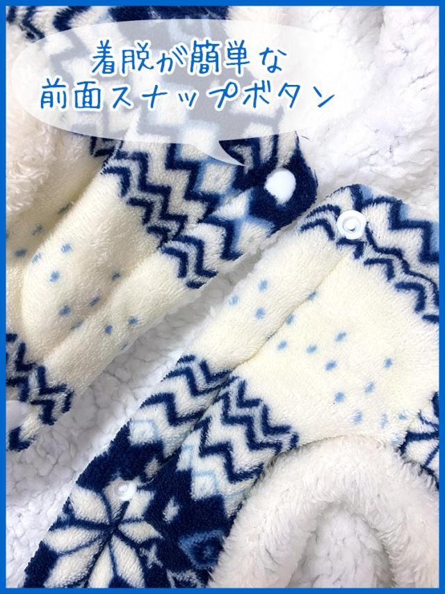 フロント開閉式のスナップボタンで脱ぎ着もかんたん!