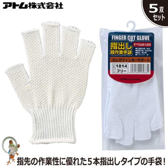 手袋 アトム ロングフィンガーサポート 1814 業務用手袋 綿100% すべり止め 軽作業用手袋 指出し
