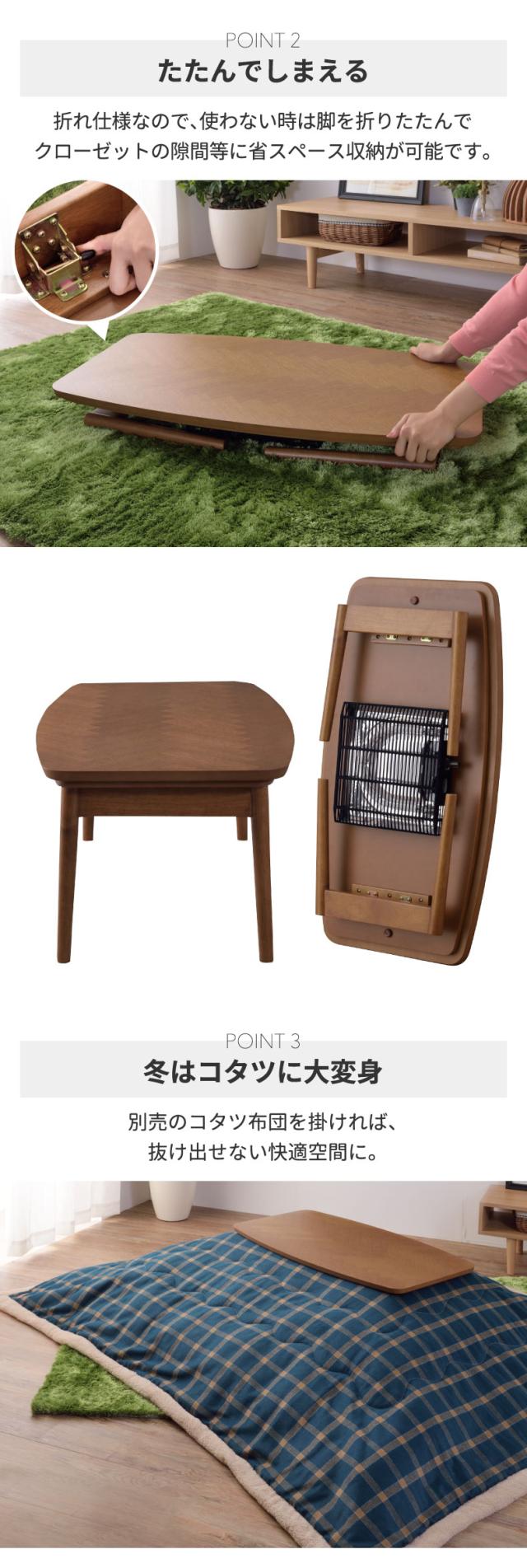 【送料無料】こたつテーブル 折りたたみ テーブル コタツ 90 こたつ ヘリンボーン センターテーブル 石英管ヒーター 折れ脚 パワフル暖房 足元広々 遠赤外線 オールシーズン 天然木 木目 収納 温度調節 スリム ナチュラル リビング 暖房器具 家電 北欧 おしゃれ 一人暮らし
