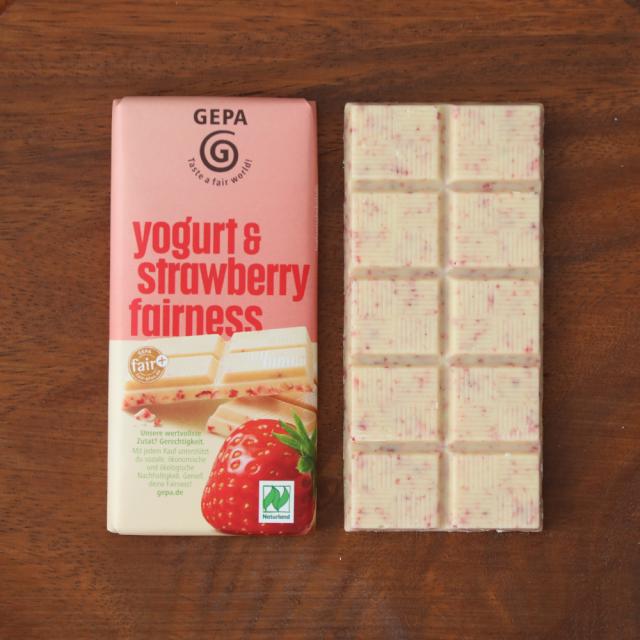 ビオ ストロベリーホワイトチョコレート ストロベリーとヨーグルトの酸味が程よく効いた爽やかな味わいのホワイトチョコレート。