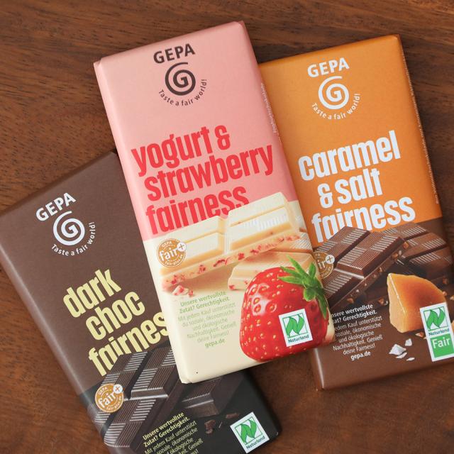 GEPA(ゲパ) ミニシリーズ 40g ビオ ダーク70%/ビオ ストロベリーホワイト/ビオ 塩キャラメルミルク | フェアトレード ダークチョコ ホワイトチョコ ミルクチョコ プレゼント