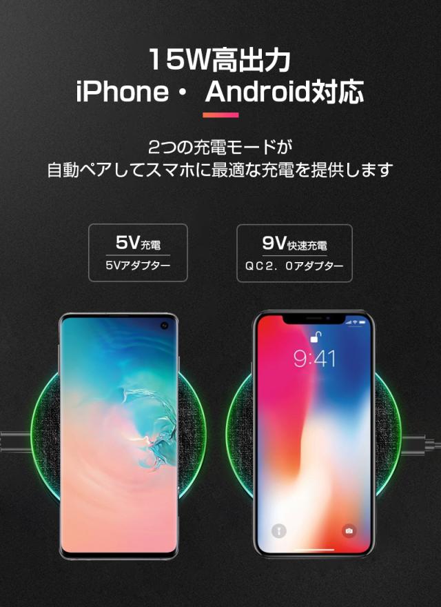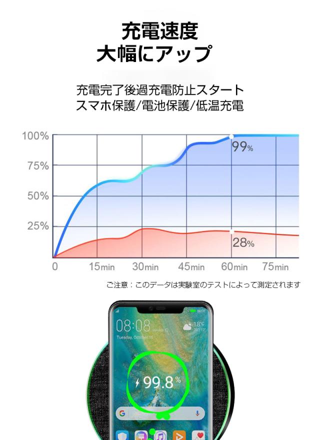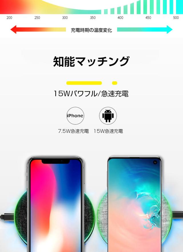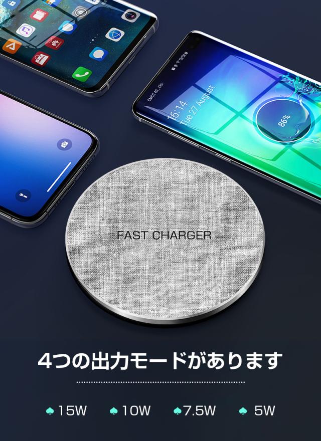 【多機種対応】最大15Wの出力で高速充電をサポートできますが、10W/7.5W/5Wの下位電力とも互換性があります。抜群な互換性で市販のQi規格スマホにほぼ対応できます。従来の10Wを超える15Wの出力で、充電時間を大幅に短縮します。