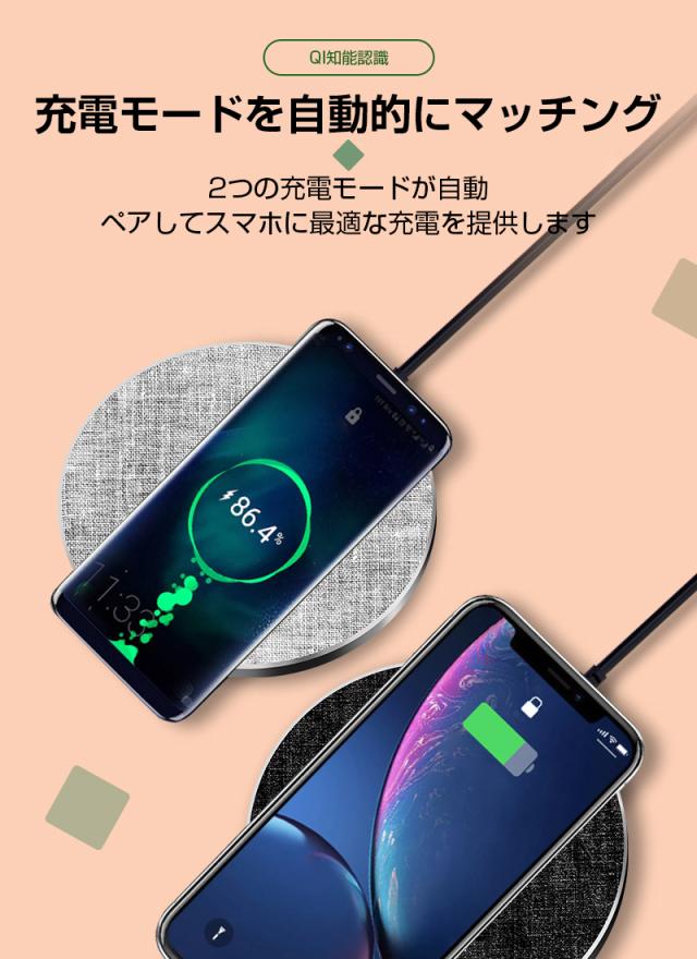 【ケーブル不要】Qi充電技術を採用しており、Qi規格機種をプレートの上に置くだけで充電できます。ワイヤレスで、ケーブルを抜き挿す必要がありません。ケーブルの絡まり、断線、接触不良等の問題から解放でき、安定な状態で充電可能です。