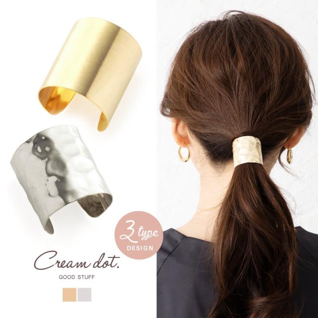 【定形外郵便送料無料】選べる3タイプ ポニーフック ヘアフック ヘアカフス ヘアゴム 大人っぽい おしゃれ ヘアアクセサリー ヘアライン加工 たたき加工 筒状 縦長 メタル 大人 上品 エレガント シンプル カジュアル ゴールド シルバー