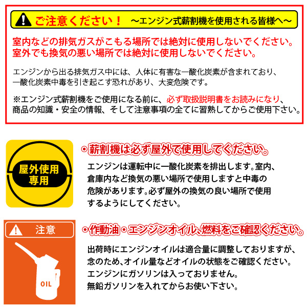 - エンジン式なので電源の無い屋外、山林での作業に最適です。