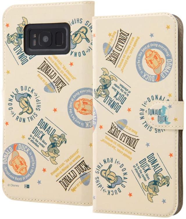 内側にはICカードポケットの付いた薄くてスリムなレザーに、ドナルドダックがプリントされた手帳型Galaxy S8+ケース。マグネット式フリップが付いているのでケースの開閉が簡単に行えます。