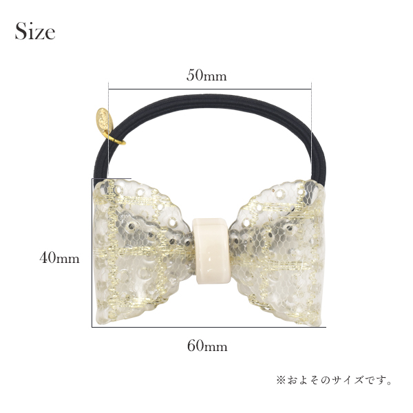 くりぬかれた丸型がアクセントのレースリボンのヘアゴムです。