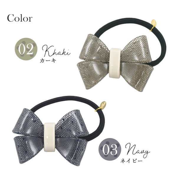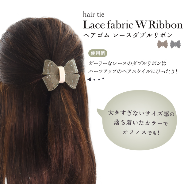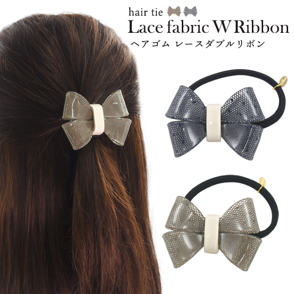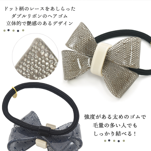 ヘアゴム レースダブルリボン 上品 カーキ ネイビー 立体的 艶感 結ぶだけ 簡単 一つ結び かわいい 華やか まとめ髪 オフィス