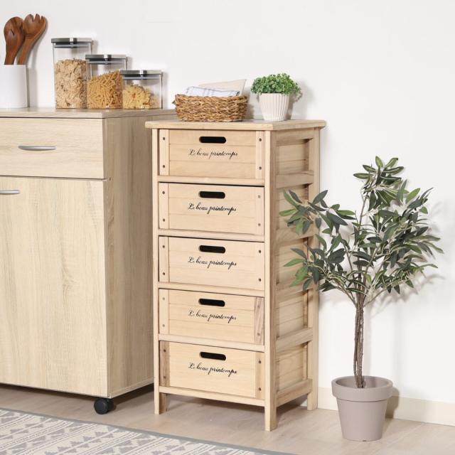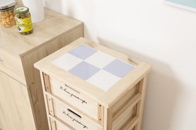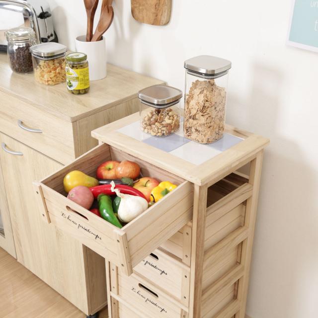 キッチンチェスト 幅40cm 5段 桐製 ストッカー タイルトップ ( キッチンストッカー タイル天板 キッチン収納 収納ラック 収納 ラック 完成品 チェスト 野菜ストッカー 木製 天板 タイル 北欧 ナチュラル おしゃれ )