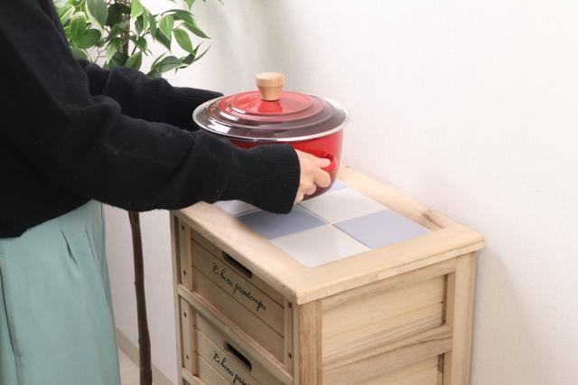 熱いやかんやお鍋などをそのまま置くことができるので、作業台やお料理中の一時置きとしてもお使いいただけます。