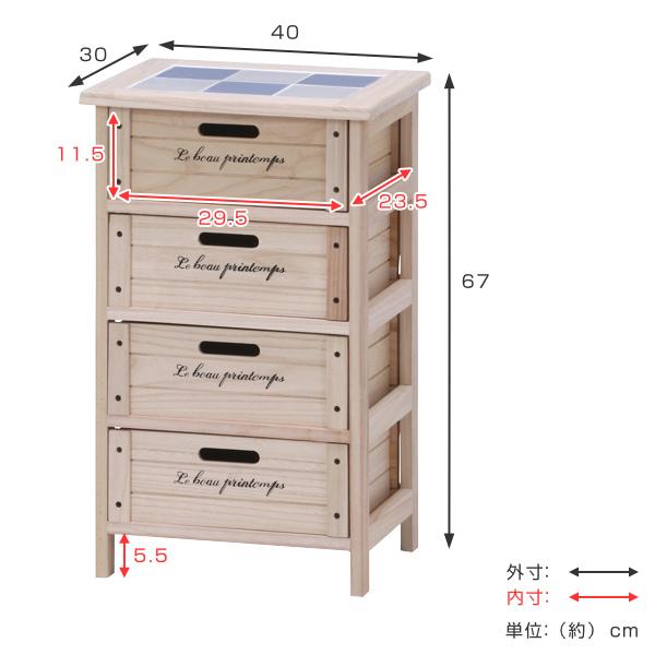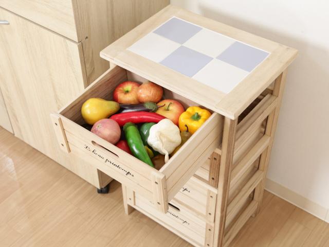 キッチンチェスト 幅40cm 4段 桐製 ストッカー タイルトップ ( キッチンストッカー タイル天板 キッチン収納 収納ラック 収納 ラック 完成品 チェスト 野菜ストッカー 木製 天板 タイル 北欧 ナチュラル おしゃれ )