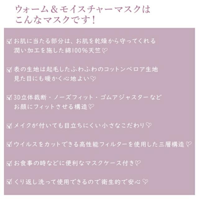 【メール便送料無料】洗える ウォーム&モイスチャー マスク (2枚入り) 布 あったか 秋冬 冬用 ピンク ベージュ グレー おしゃれ かわいい 子供 女性 大人 小さめ 大きめ 立体 保湿 ケース フィルター 肌荒れしない ポイント消化