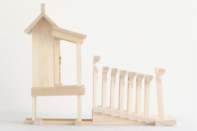 鳥居はお札を上から差し込んで、連なった八門に整列するように納める仕様。沢山のお札を簡単に、美しく納められます。祠は奥行きがあるので、たくさんのお守りを収めても大丈夫。お祈りの際には整頓されたお札とお守りが、気持ちも一緒に整えてくれるでしょう。